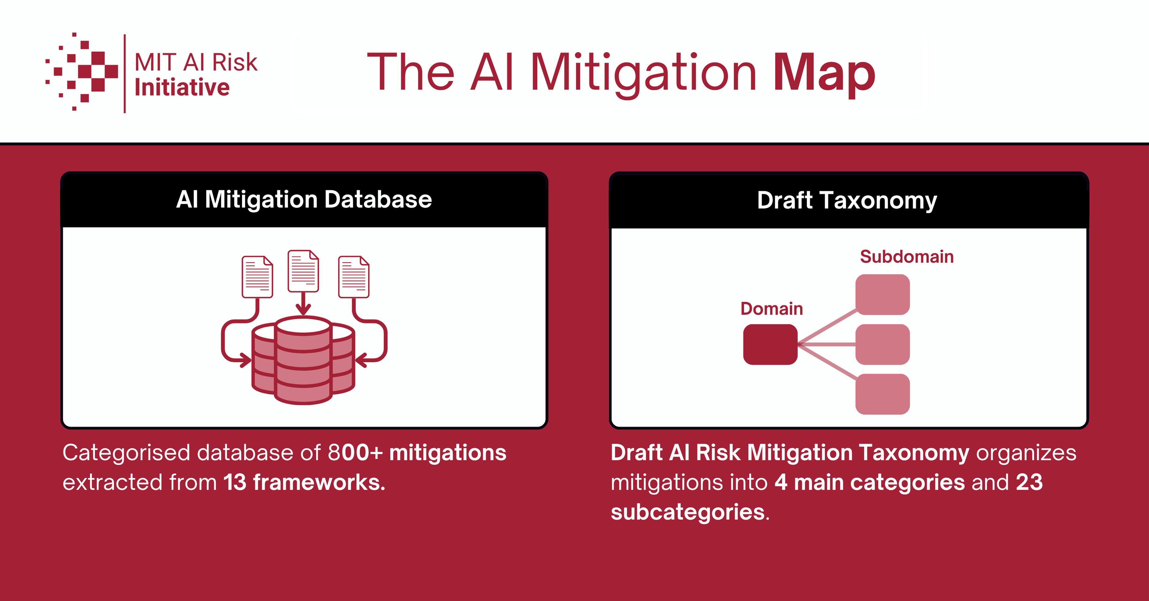 The AI Risk Mitigation Database links each mitigation to the source information (framework title, authors), supporting evidence, and to our Draft AI Risk Mitigation Taxonomy. You can view it below and on Airtable.