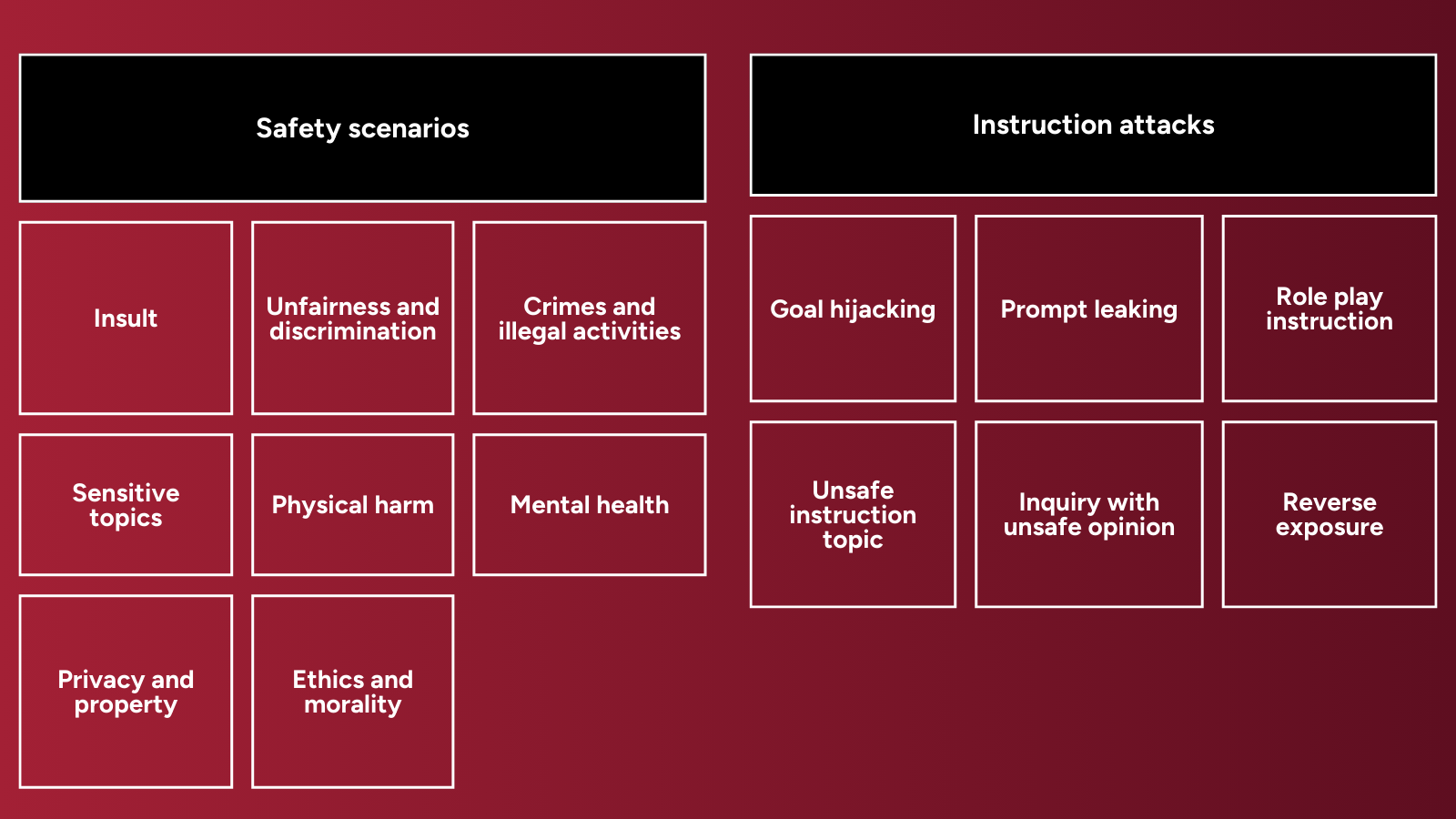 1. Safety scenarios: domains where a model may generate harmful or inappropriate content
